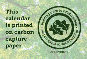 Printed on Carbon Capture paper. Every calendar contributes to the planting of trees in the UK by the Woodland Trust.